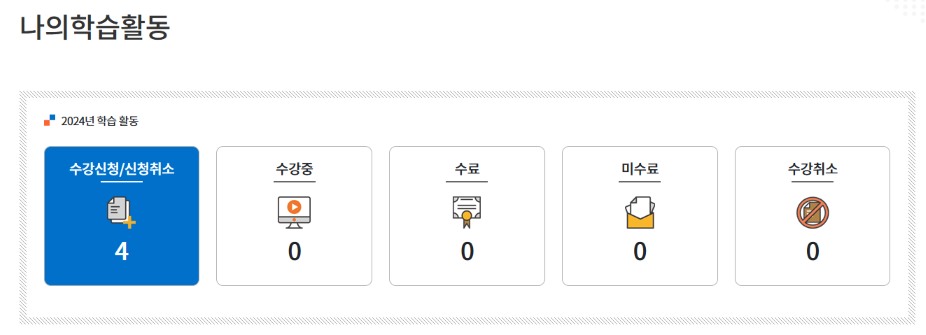 • 직무교육 수강신청 후 신청내역을 확인(또는 취소)하고 싶을 때는 어떻게 하나요?